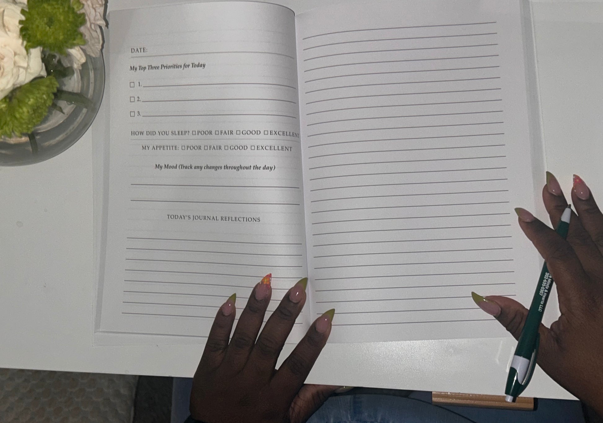 - Daily journaling pages with mood + symptom check-ins and space to reflect